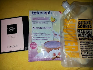 Tetesept Meersal-Ölbad Mandelblüte: War mal ein Boxprodukt und musste lange auf seine Benutzung warten. Habe mich dafür entschieden das Ölbad als Peeling zu benutzen, da ich demnächst nicht baden werde. Ich habe die lecker riechende Öl-Salz-Pampe umgefüllt und so konnte ich mich 3x damit ordentlich peelen in der Dusche. War wirklich sehr lecker im Geruch und die Pflege war auch ganz schön, das Peeling hätte stärker sein können - aber das ist ansichtssache. Nachkauf evt. mal, wenn ich Lust dazu haben sollte.